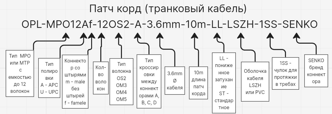 Транковый кабель MPO12Uf-12OS2-B-3.0mm-50m-LL-LSZH-SENKOОдномодовый патч корд с использованием конне..